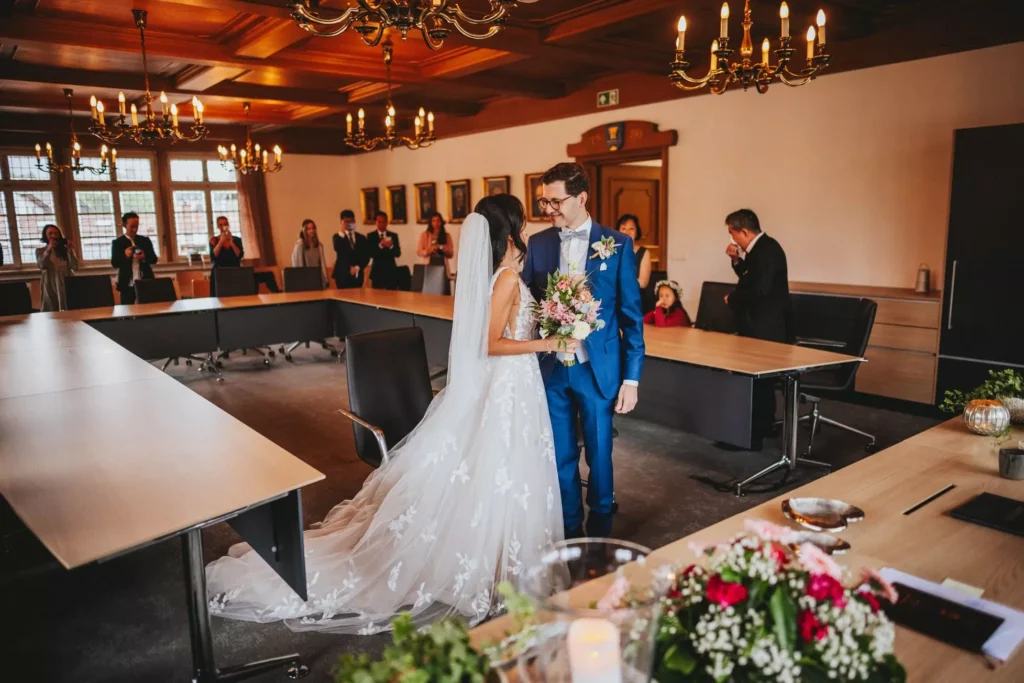 Tageslicht ist im Winter kostbar. Plane die Trauung so, dass davor oder danach ein helles Zeitfenster liegt. Zum Beispiel Getting Ready am späten Vormittag, First Look um die Mittagszeit, Trauung am frühen Nachmittag, kurzer Außenmoment in der Blauen Stunde, Dinner im Kerzenschein. Rechne mit Wetterpuffern und halte Strecken kurz. Park- und Shuttleoptionen sollten früh kommuniziert werden, niemand erinnert sich gern an die längste, kälteste Wartezeit des Jahres